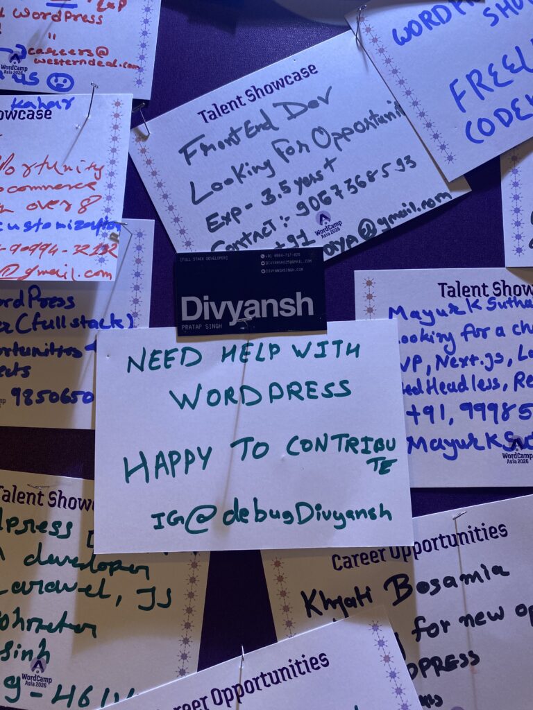 It was my first time attending a flagship event by WordPress, and the way it was organized and how they welcomed us was unimaginable. The registration process went really smoothly via the QR code they had generated in advance—it was like scan, print your ID, and go. The swag bag contained some nice stickers; I honestly still haven’t gone through them. These things made the start just better 🙂